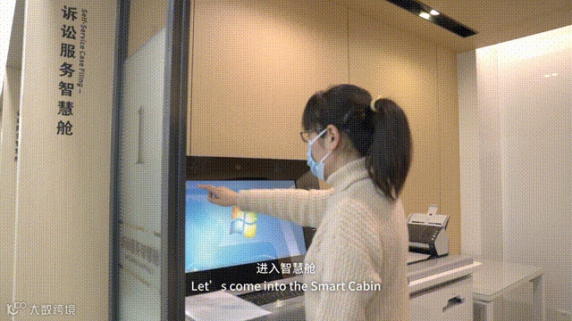 找到“智慧舱”,出示身份证并通过人脸识别。“智慧舱”的电脑屏幕是触摸式,并配有键盘、鼠标、扫描仪,麦克风等设备,能够协助你完成操作。