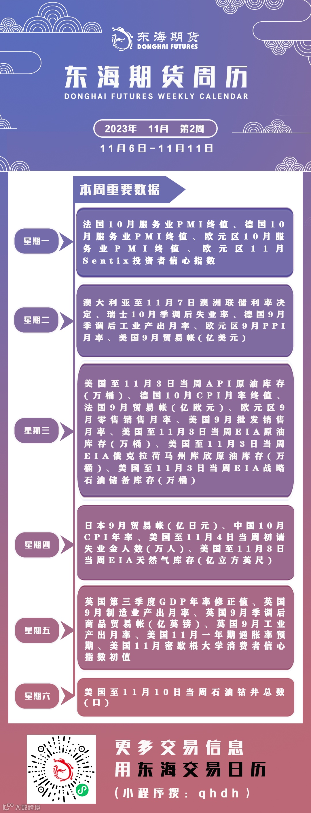 东海期市周历丨本周你需要知道的重要数据(11月6日-11月11日)