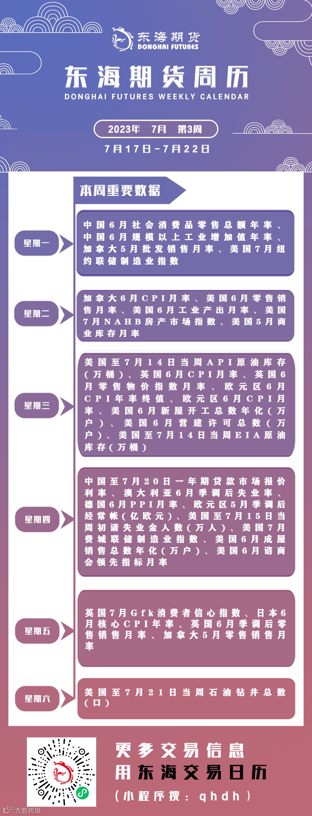 东海期市周历丨本周你需要知道的重要数据(7月17日-7月22日)