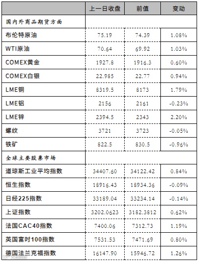 海外方面,美国5月核心PCE物价指数年率录得4.6%,低于预期和前值4.70%;此外,美国5月个人支出月率录得0.1%,几乎陷入停滞。市场削减对美联储加息的押注。市场方面,美国通胀显示出降温迹象,短期美元走弱,风险偏好继续升温,有色和贵金属短期反弹。