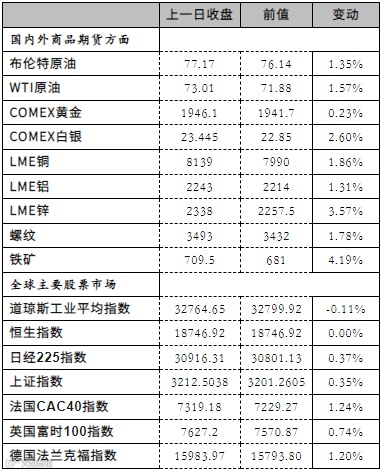 2.操作建议:Brent78美元/桶左右,WTI 73美元/桶区间操作。