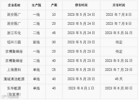 装置方面:内蒙古沪蒙焦化新建年产40万吨焦炉气制甲醇装置计划6月中旬投产运行,具体情况待继续跟踪。。新疆某大型甲醇装置5月9日附近计划外停车检修,目前暂未恢复正常。 安徽晋煤中能年产50万吨甲醇装置负荷近期略降, 30万吨老装置于2023年4月底重启短暂运行后,于5月下再度停车。安徽碳鑫(临涣焦化三期)年产50万吨甲醇装置于4月底附近停车检修,关注6月初附近恢复情况。河南中新化工年产35万吨甲醇装置于2022年10月31日检修停车,据悉于5月18日点火重启,由于装置故障,于2023年5月21日停车检修,重启时间待定。云南云天化年产26万吨甲醇装置于5.15日因电力维修停车,预计25号陆续重启。云南曲靖焦化实业年产20万吨甲醇装置运行正常,另10万吨装置停车检修中,计划近期重启。中海化学年产140万吨两套甲醇装置一期年产60万吨项目运行正常;二期年产80万吨装置目前仍在检修中,预计周末附近恢复。