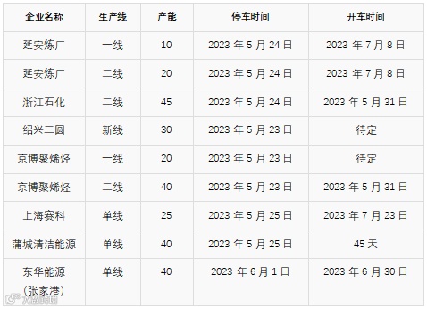 装置方面:新疆某大型甲醇装置5月9日附近计划外停车检修,目前暂未恢复正常。 安徽晋煤中能年产50万吨甲醇装置负荷近期略降, 30万吨老装置于2023年4月底重启短暂运行后,于5月下再度停车。安徽碳鑫(临涣焦化三期)年产50万吨甲醇装置于4月底附近停车检修,关注6月初附近恢复情况。河南中新化工年产35万吨甲醇装置于2022年10月31日检修停车,据悉于5月18日点火重启,由于装置故障,于2023年5月21日停车检修,重启时间待定。云南云天化年产26万吨甲醇装置于5.15日因电力维修停车,预计25号陆续重启。云南曲靖焦化实业年产20万吨甲醇装置运行正常,另10万吨装置停车检修中,计划近期重启。中海化学年产140万吨两套甲醇装置一期年产60万吨项目运行正常;二期年产80万吨装置目前仍在检修中,预计周末附近恢复。