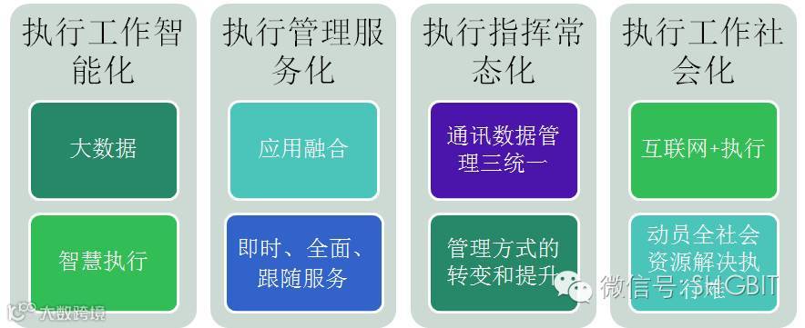 贵州高院执行指挥中心以“3+1”模式实现其“四化”建设目标。“3”即指执行法官服务系统、执行管理服务系统、社会公众服务系统三大系统。“1”指“执行阿尔法GO”即“贵州执行大数据应用分析系统”。