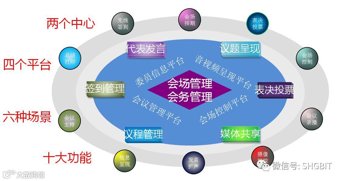 会议管理软件系统,可同时实现议程管理、会议签到、会议表决、摄像跟踪、信号切换等功能。