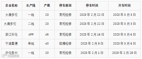 装置方面:陕西黄陵年产30万吨甲醇装置27日已陆续恢复。 山西晋煤天源年产10万吨甲醇装置目前运行平稳,原定检修计划暂时取消。河南鹤煤煤化年产60万吨甲醇装置2022年11月12日因成本问题停车,2023年2月21日点火,装置于2023年2月27日已产出产品。