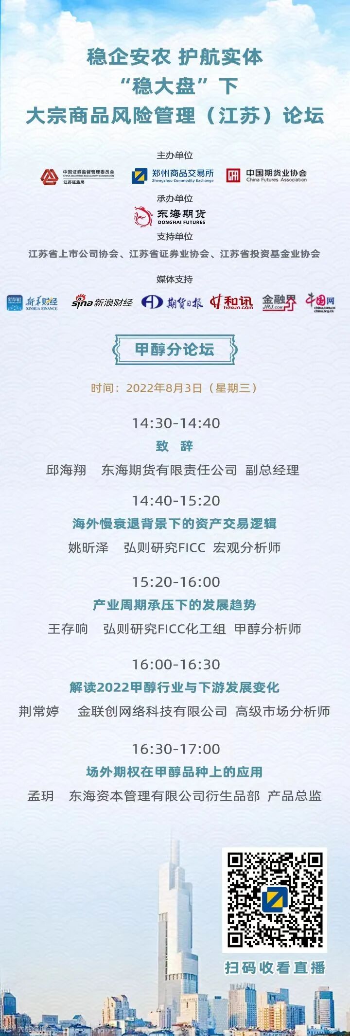 导读:"稳大盈“下,大宗商品风险管理(江苏)论坛将于8月3日(星期三)下午14:30 线上举办。