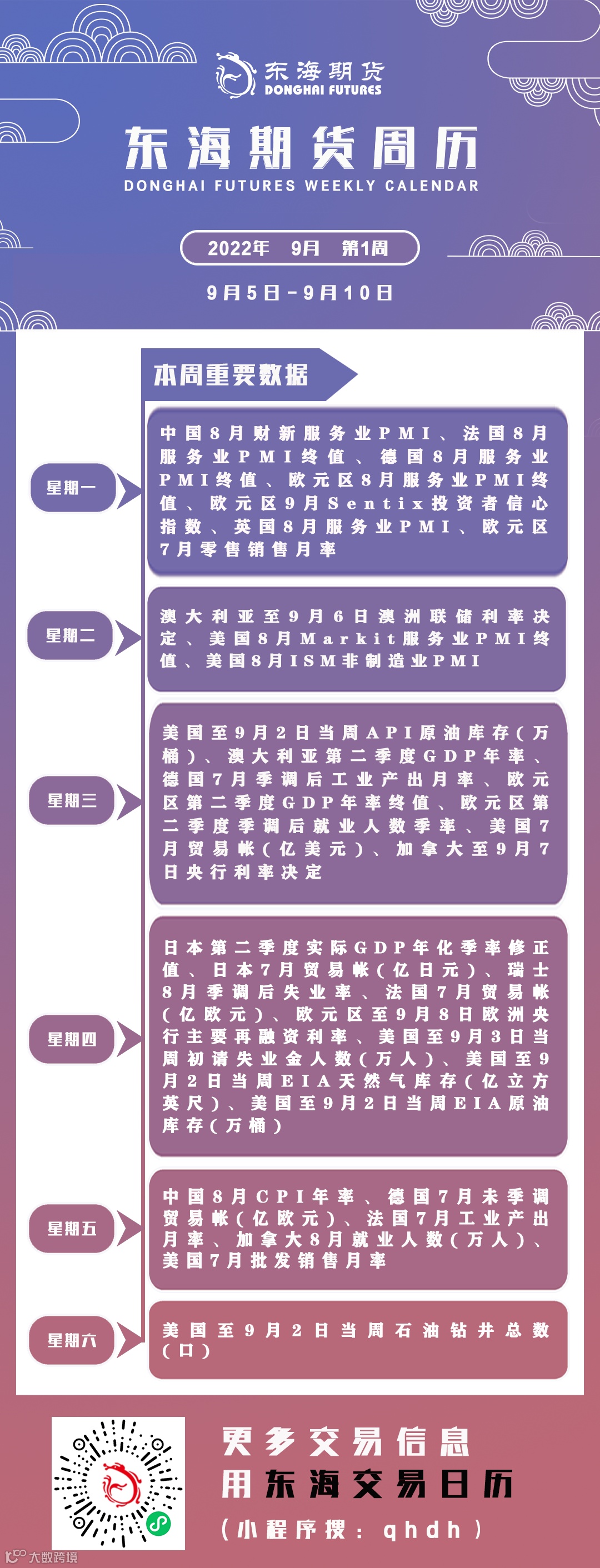 东海期市周历丨本周你需要知道的重要数据(9月5日-9月10日)