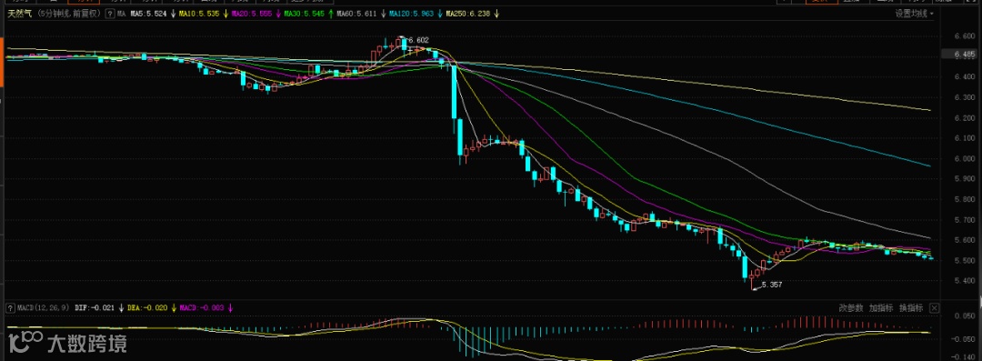 美国天然气期货日内重挫15%,现报5.521美元/百万英热。