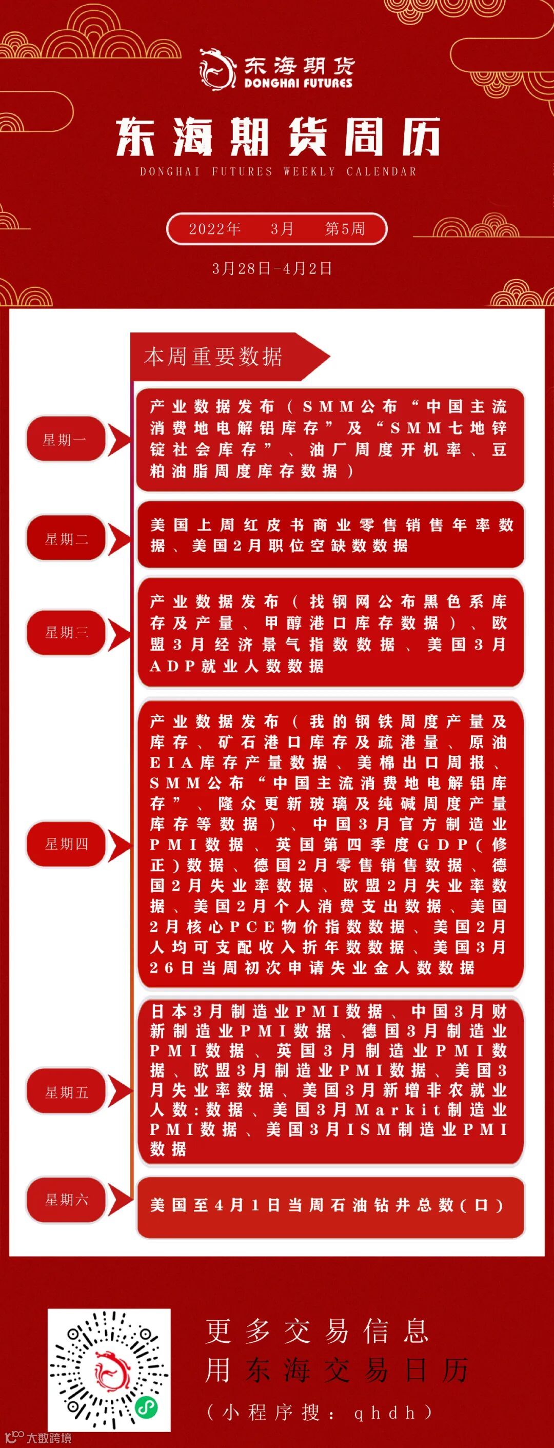 东海期市周历丨本周你需要知道的重要数据(3月28日-4月2日)