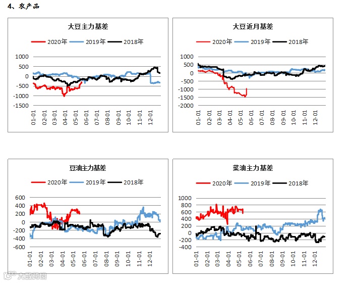 农产品板块:大豆,豆油,菜油,棕榈油,豆粕,菜粕,玉米,白糖,棉花。