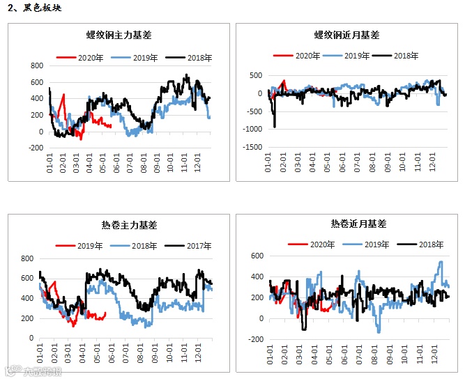 黑色版块:螺纹钢,热卷,铁矿石,焦煤,焦炭,动力煤。