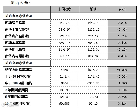 上周国内商品板块涨跌互现,股指期货延续回调,国债期货持续走高。
