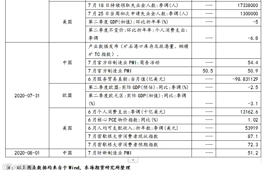4. 7月31日(周五):产业数据发布(矿石港口库存及疏港量、铜精矿TC指数)、中国7月官方制造业PMI