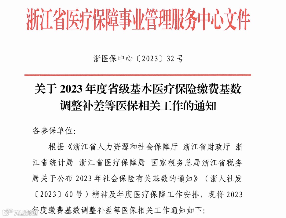 浙江医保发布省级基本医疗保险缴费基数调整补差等医保相关工作的通知