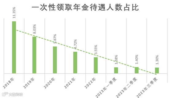从历史数据看,企业年金待遇一次性领取人数占比持续下降,已从2018年的11.3%下降到2023年三季度的1.30%,说明企业年金作为补充养老保险制度的重要组成部分,长期保障的功能日渐突显。