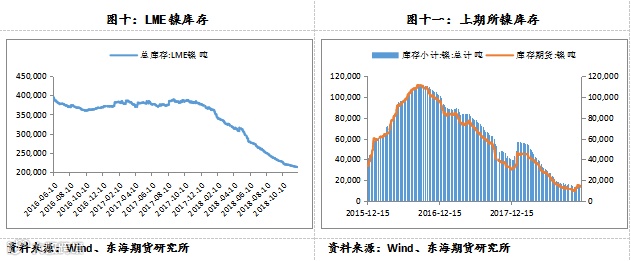 菲律宾方面,政府机构公布的数据显示,2018年1-9月该国镍矿石产出量同比下降1%至2220万干吨。菲律宾矿山和地球科学局称,该国29个镍矿中的11个在检修或运营暂停期间没有产出。但是菲律宾环境部称,若纠正前期环境违法行为,将准许九个关停的矿场恢复运营,这其中有六个是镍矿。这意味着菲律宾的镍矿产出在将来也有增加的可能。