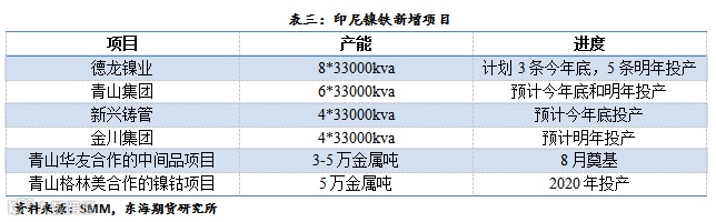 印尼方面,据了解2018年底-2019年初投产产能或高达10万镍吨以上,主要是青山集团、德龙镍业、新兴铸管和金川集团。其中青山集团目前有20台33000KVA的RKEF炉,已足够青山在印尼的不锈钢项目使用,它将在2019年再投产6台新的33000KVA炉,新增的产能预计将更多的运往国内。德龙镍业11月份投产3条产线至10条产线,一期剩余的5条产线预计明年投产,远期规划再建30条RKEF镍铁生产线。此外,新兴铸管和金川集团分别计划在今年底和明年再投产4条RKEF生产线。
