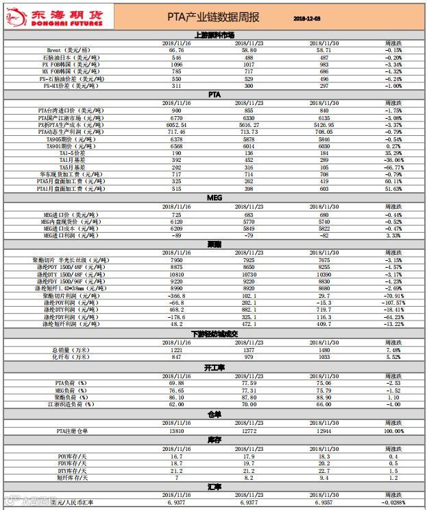 PTA产业链数据周报20181203