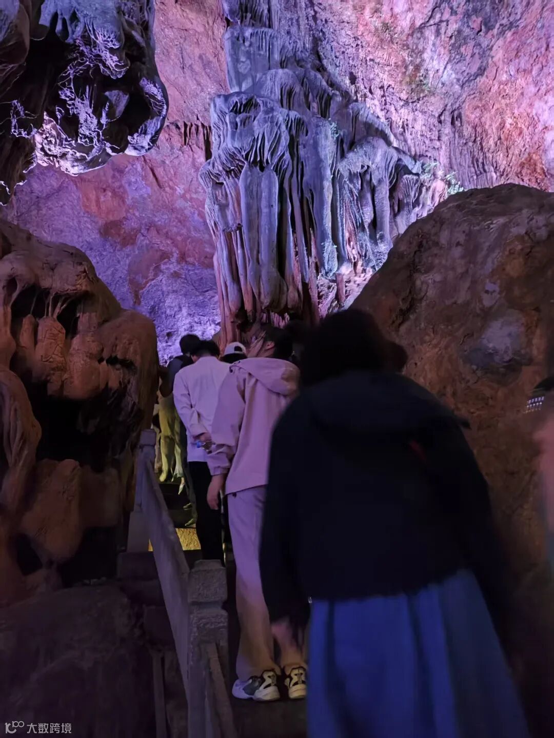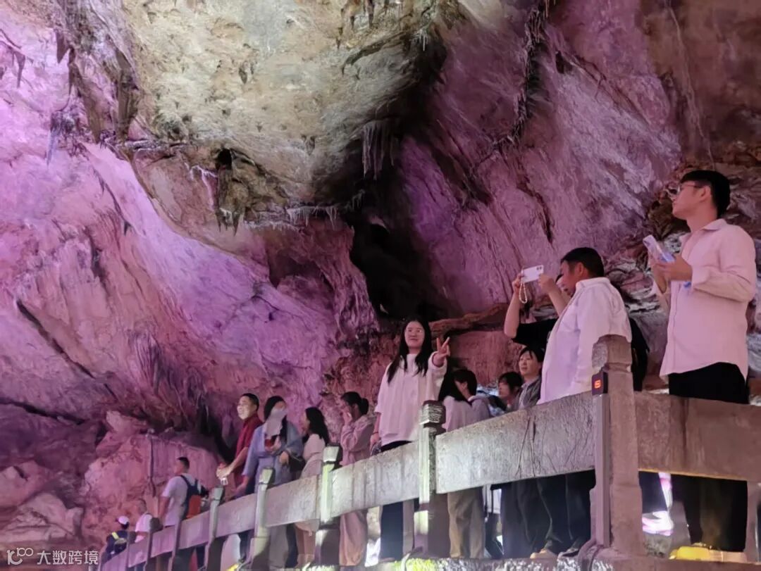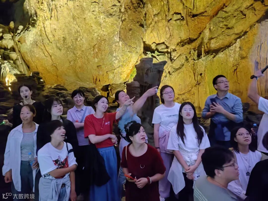 团建第三站,我们来到了常年恒温18℃的瑶琳仙境,一进入溶洞,便感受到清凉舒适。拾阶而上,地下水潺潺流淌的声音在溶洞中回响,沿途“银河飞瀑” “擎天玉柱”“三⼗三重天”“瑶琳玉峰”等奇观依次呈现,造型各异的石笋与钟乳石在灯光秀的映衬下,更添别样风采,一步一景间,我们不禁感叹大自然的鬼斧神工。