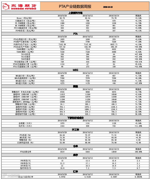 PTA产业链数据周报20181022