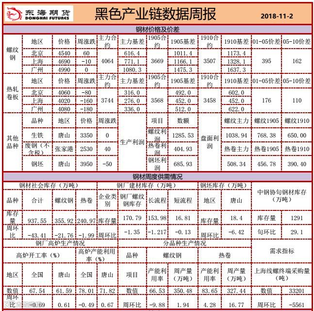 以下数据为东海期货研究所整理的产业链数据周报,快来看看吧!