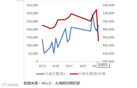 一般经验认为缴纳保证金的期权卖方属于资金优势者,通过分析卖方的持仓行权价来分析大资金倾向的压力位和支撑位。截止10.12,成交量多集中3500-3600,持仓量上,看涨期权集中在3500-3650,看跌期权集中在3000-3200。可以看出,随着豆粕强势突破3400的压力位,目前市场比较认可的压力位上移至3650一线,支撑位还是在3200附近。