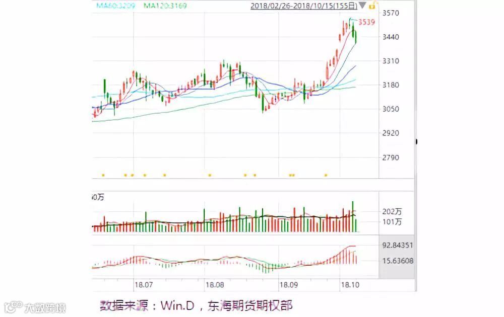 受美豆收割进度滞后的影响,美豆主力上涨3%,节后国内豆粕跟涨。国际方面,美国副总统彭斯就中国政策的长篇演说、中美在南海的近距离接触、美国对中国留学生签证涉嫌等事件,都表明短期内,中美贸易战缺乏和谈的可能。国内方面,中国饲料工业协会发布声明称,针对减少豆粕消费提出了公开征求意见,意在减少饲料中的蛋白含量,此举或致大豆减少1000万吨。 同时,非洲猪瘟点状爆发,结合四季度大豆的库存下降,豆粕中长期或迎来一波新的行情。
