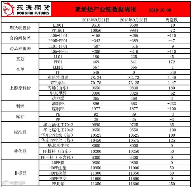 聚烯烃产业链数据周报20181008