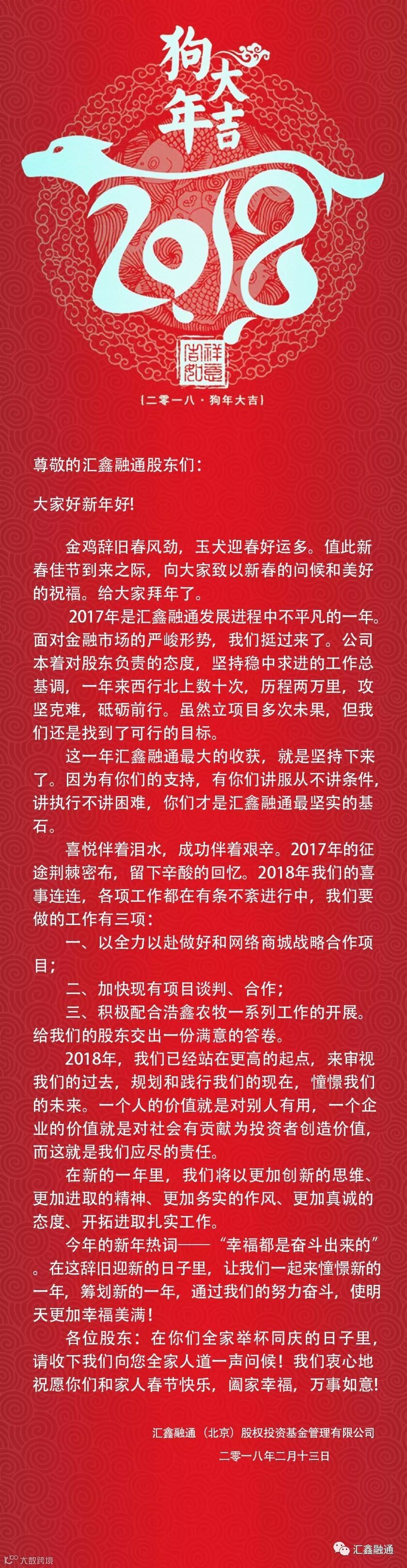 开始的时候,汇鑫融通给所有股东拜个早年!