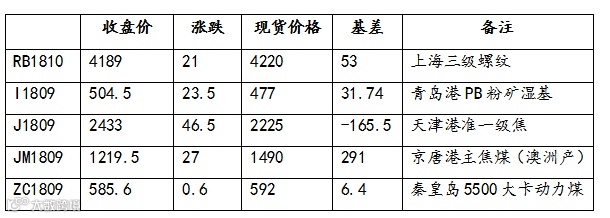 周五,TA1901-TA1809价差在-418元/吨;PTA期现价差(TA1809-PTA现货)为-64元/吨;PTA现货加工费约为859元/吨。