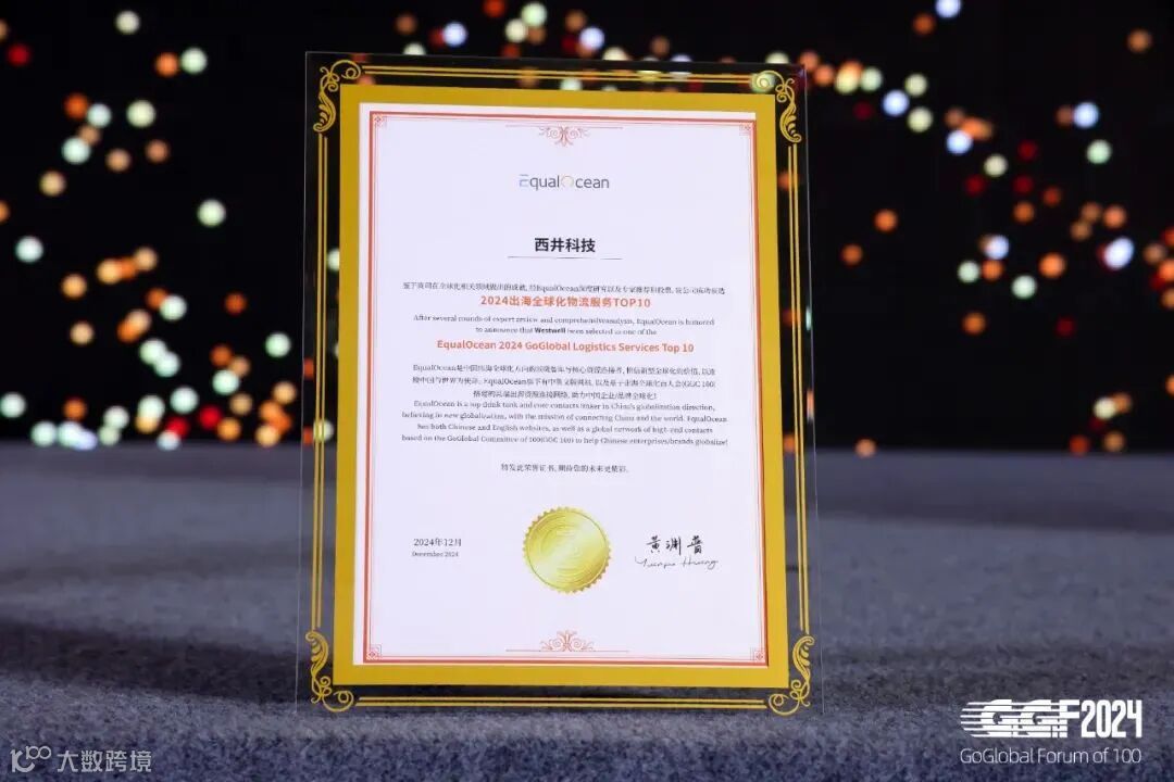 2024年12月18日至19日,由EqualOcean主办的「2024出海全球化百人论坛」(GGF2024)在上海圆满落幕。本次论坛共迎来超100位上台嘉宾和超3500人次的到场观众,堪称2024年度出海全球化方向规格最高、规模最大的盛会。论坛期间,西井科技入选“2024出海全球化物流服务TOP10”榜单,彰显出其在全球化物流服务领域的核心竞争力和影响力。