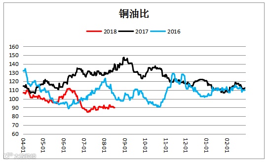 铜油比价小幅震荡。