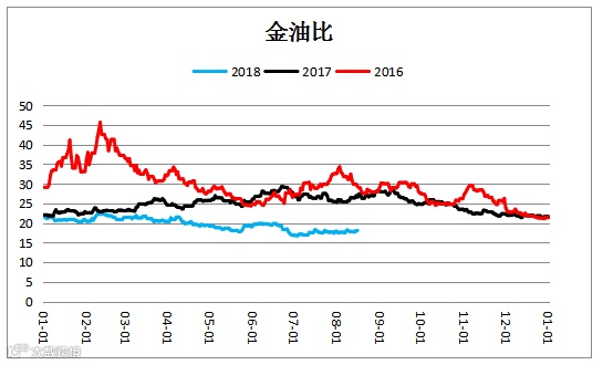 金油比价震荡下行。