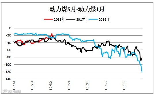 动力煤跨期价差(ZC1905– ZC1901)震荡下行,建议观望。