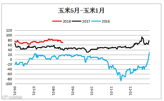 玉米跨期价差(C1905– C1901)小幅震荡。