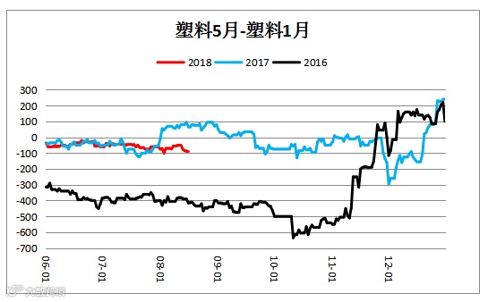 线性低密度聚乙烯价差(L1905– L1901)小幅震荡。