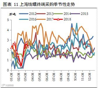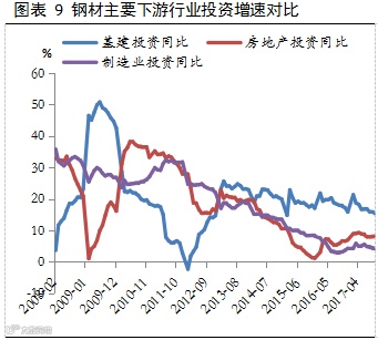 2018年在金融去杠杆以及房地产调控的作用下,建材中期需求大概率走弱,根据国家统计局公布的数据,尽管今年1-2月份,国内房地产投资超预期回升,但新开工、销售、土地购置以及到位资金等多项指标均出现下滑。另外,“房住不炒”政策取向越发明显,购房者的成本也越来越高,今年2月份,全国首套房贷平均利率为5.46%,同比增长22.15%,自2016年10月以来,该数据一直呈现上行趋势;同时,我们看到,在房地产企业资金来源数据中定金及预收款与按揭贷款的占比已经由2017年7月的46.5%下降至42.6%,且2月份,居民中长期贷款数据大幅回落,这些均表明未来房地产企业的资金整体呈现偏紧态势,而根据以往历史数据,房地产企业到位资金增速对于土地购置和新开工具有领先作用,因此,预计房地产投资增速的回暖不具有持续性,二季度之后数据可能会出现明显下滑。基建投资方面,2018年政府工作报告将财政赤字率下调0.4个百分点至2.6%,将铁路投资目标由8000亿元下调至7320亿元,叠加今年去杠杆和防范化解金融风险的大背景,故基建投资下行趋势整体难改。而房地产、基建投资的下滑必然会导致钢铁有效需求的减少。