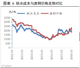 3月份之后,采暖季限产即将结束,在目前吨钢利润仍有700-800的情况下,钢厂仍有较强的复产冲动,4月份之后复产进程将会有所加快。截止到上周末,唐山地区高炉开工率和产能利用率分别为57.32%和58.93%,较前一周回升1.83和1.36个百分点,全国高炉开工数据亦小幅回升。不过需要注意的是,由于一季度废钢价格的大幅上涨,导致铁水成本优势再度显现,尽管目前废钢价格已经自3月中旬高点下跌400元/吨,但根据我们的计算,其价格仍高出铁水成本200元/吨,故后期钢厂复产过程中必然选择增加铁水用量,而减少废钢用量,预计4月份之后生铁产量将会增加,铁钢比值将会有所回升。