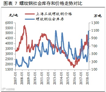 但是,对于库存数据我们不仅要关注其变化趋势,对于其绝对量以及库存结构也要关注。目前不论是钢材社会库存总量还是螺纹钢库存量,均处于2014年初以来的高位,库存的消化尚需一定时日。另外,从库存结构上看,库存传导渠道不畅,整个产业链库存呈现向上游转移趋势。根据中钢协统计数据,2018年3月上旬,重点钢铁企业钢材库存量为1468.13万吨,环比2月底上涨70.88万吨,涨幅5%。而Mysteel统计的5大品种钢厂库存为694.23万吨,较前一周增加0.78万吨,其主要增量为螺纹钢,周环比增幅达到5.68万吨。表明钢贸商目前依然持有较为谨慎的态度,从钢厂拿货意愿降低。因此,目前库存的总体压力依然比较大,而后期由去库存引发的价格反弹能否持续更多的取决于库存的下降速度以及库存结构的优化。不过,从近3周情况看,螺纹钢厂库呈现增幅逐渐收窄态势,应该说库存数据总体朝着利好方向发展。