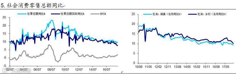 3、3月社会消费品零售总额同比10.1%,高于预期及前值。2月春节期间传统消费表现疲软,3月社消总额增速出现季节性的回升。从细项数据来看,3月化妆品、珠宝及通讯器材增速明显回升,分别至22.7%、20.4%、15.4%,且服装鞋帽、日用品和办公用品消费量均明显回升,消费对经济拉动水平较明显。而3月汽车消费增速仅为3.5%,增速低于去年全年水平,对整体消费起到一定的拖累作用。地产相关的家电、家居、建材消费增速也有所回暖,但伴随着房地产市场调控政策的持续作用,未来地产后产业链商品消费仍将持续放缓。目前油价较为坚挺,支撑石油制品名义消费增速保持较高水平。