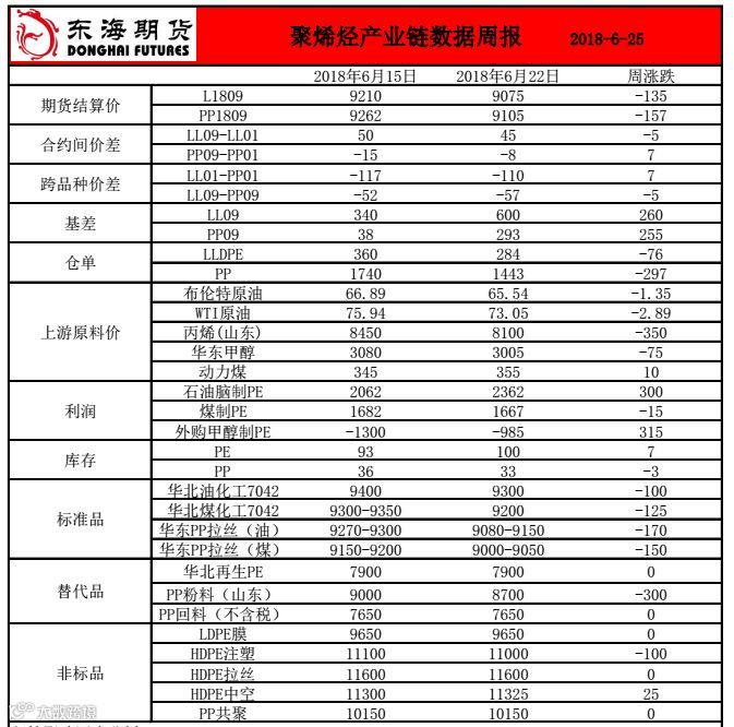 聚烯烃数据产业链周报20180625