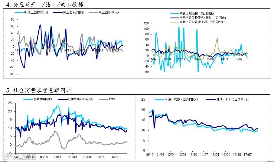 4、1至4月城镇固定资产投资同比 7%,低于预期及前值,房地产数据全面滑坡。从三大类投资来看,在房地产方面,1-4月房地产开发投资小幅下滑、土地购置面积创新低、销售面积持续下降。房地产数据的全面下行表明房地产投资内生动力不足,且被动补库存、棚改政策对于房地产投资支撑作用也开始减弱。考虑到房地产调控偏紧的基调不变,叠加房贷利率上升,流入房地产的资金将会持续缩小,开发资金与销售资金会受到双重制约,地产投资稳步下滑趋势难改。4月制造业投资有所回升,随着未来中美贸易不确定性的持续以及我国供给侧结构性改革的推进,内部和外部的压力将共同迫使制造业转型升级,预计未来一段时间内,高新制造业投资将在一定程度上支持投资增速。4月基建投资持续回落,主因地方债务整顿,资渠道受到限制。目前对于基建投资增速能否企稳回升存在较大的不确定性,一方面中央层面的PPP项目库清理接近尾声,且国家倡导扩大内需,支撑基建投资企稳回升;另一方面受到地方债务整顿,融资成本抬升的限制,目前来看主要却决于经济回落的速度。