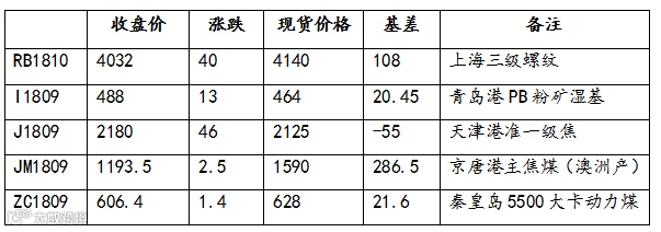 周四,TA1901-TA1809价差在-104元/吨;PTA期现价差(TA1809-PTA现货)为-43元/吨;PTA现货加工费约为658元/吨。