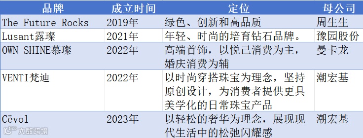 表.目前已布局培育钻石业务的珠宝上市公司及其培育钻石品牌