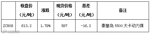 上周五动力煤主力合约ZC809开盘于601.8元/吨,最高616.8元/吨,最低601.4元/吨,报收于613.2元/吨。较前一交易日上涨10.8元/吨。