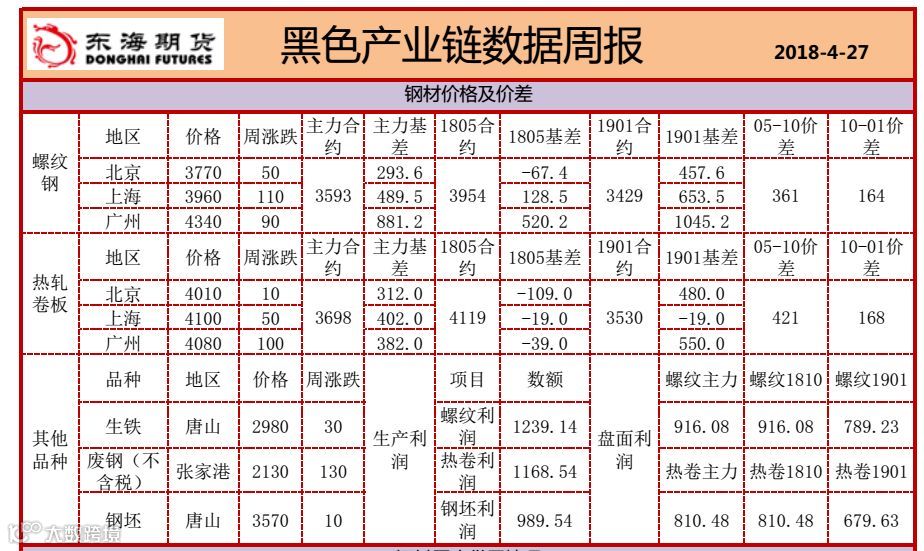 以下数据为东海期货研究所整理的产业链数据周报,快来看看吧!