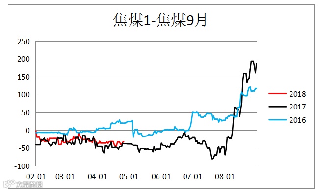 焦煤跨期价差(JM1901 – JM1809)小幅震荡,焦炭跨期价差(J1901 – J1809)震荡,建议观望。