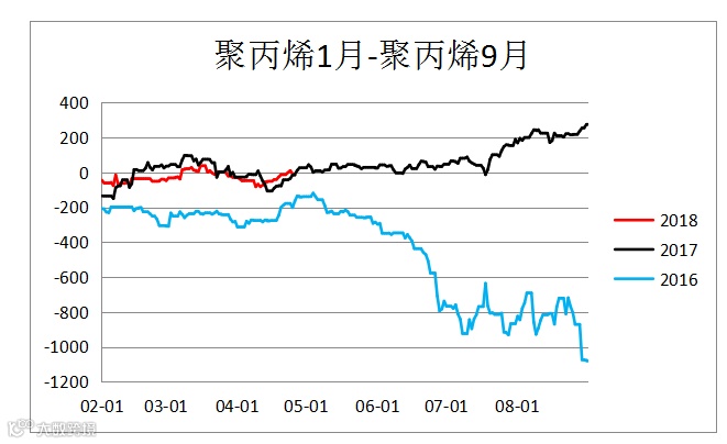 聚丙烯跨期价差(PP1901 – PP1809)震荡上行。