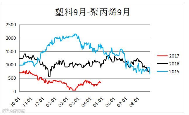 塑料聚丙烯价差(L1809– PP1809)震荡上行,未来行情有待观望。